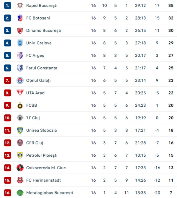 Victoria de la Craiova, pe lângă că o readuce pe UTA deasupra liniei care desparte în două ierarhia Superligii, reprezintă și surpriza unei prime etape din retur care a produs destule meciuri spectaculoase. Tot o surpriză, dar de proporții mai mici, a produs și Hermannstadt, care a smuls un punct pe teren propriu cu FCSB după ce a condus cu 2-1 și 3-2 și a fost egalată în prelungiri deși avea om în plus. Cel mai important din perspectiva competiției este însă faptul că avem o schimbare de lider. FC Botoșani a întrerupt seria neverosimilă de rezultate pozitive cu un eșec la Ovidiu împotriva Farului, prilejuindu-le giuleștenilor lui Gâlcă să se instaleze în fotoliul de lider. A fost runda în care două dintre surprizele campionatului s-au văzut cu elanul tăiat de către echipele ceferiste. Rapid a învins pe teren propriu pe FC Argeș în timp ce vișiniii din Gruia au reușit să-i ofere un debut cu victorie noului antrenor Daniel Pancu, învingând pe Unirea Slobozia la Clinceni. New-entry și pe podium unde Dinamo le-a luat fața oltenilor lui Rădoi după succesul foarte clar în fața ciucanilor lui Ilyes. La rândul ei, o altă nou-promovată, Metaloglobus, a cedat pe Cluj Arena, șepcile roșii bifând un rezultat pozitiv înainte vizitei la Arad; o vizită însă pentru care vor mai trebui să aștepte puțin deoarece campionatul se oprește pentru a face loc competițiilor dedicate echipelor naționale.