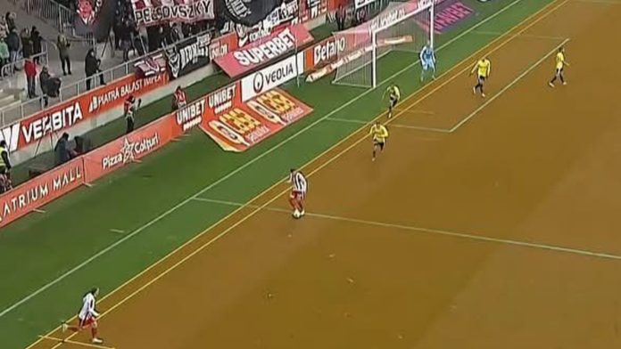 După redesenarea liniilor, am concluzionat că atacantul se află aproape pe aceeași linie cu penultimul apărător și, prin urmare, golul echipei UTA Arad ar fi trebuit validat.“