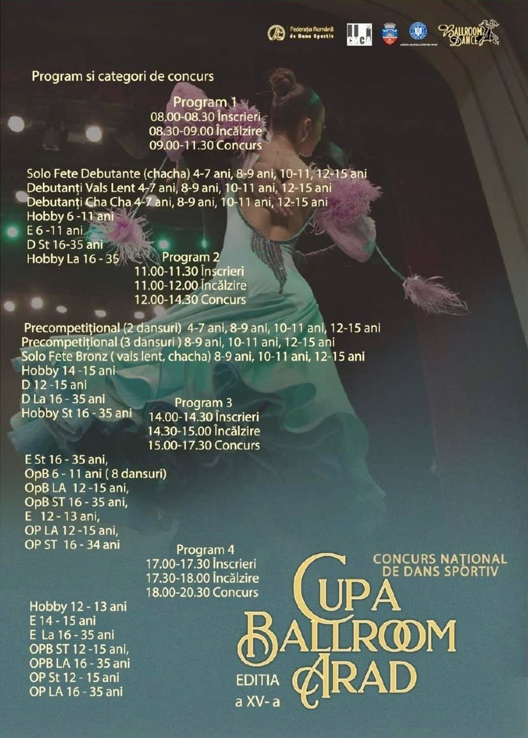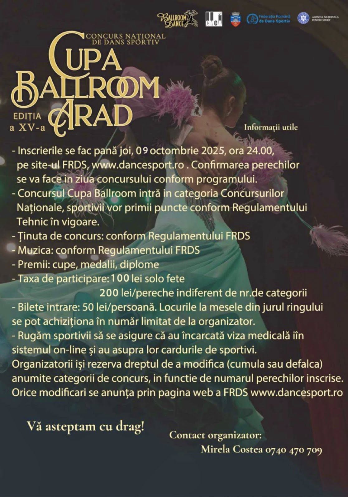 Organizat de Clubul Ballroom Dance Arad, singurul club local care reușește să aducă în oraș competiții de o asemenea anvergură, evenimentul promite o zi plină de grație, emoție și performanță.