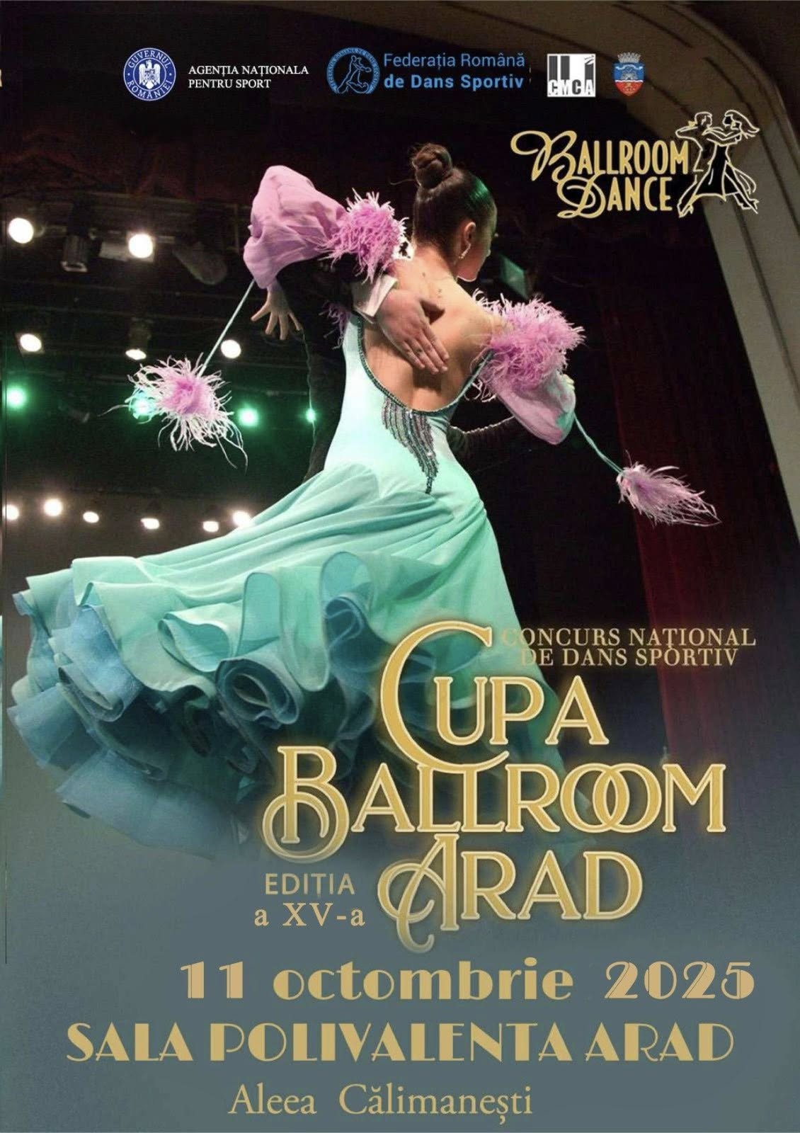Sâmbătă, 11 octombrie 2025, Sala Polivalentă din Arad se va transforma într-un adevărat templu al eleganței și mișcării. Aici va avea loc Concursul Național de Dans Sportiv „Cupa Ballroom”, ajuns la cea de-a XV-a ediție, un eveniment care adună la start aproximativ 400 de sportivi din toată țara.