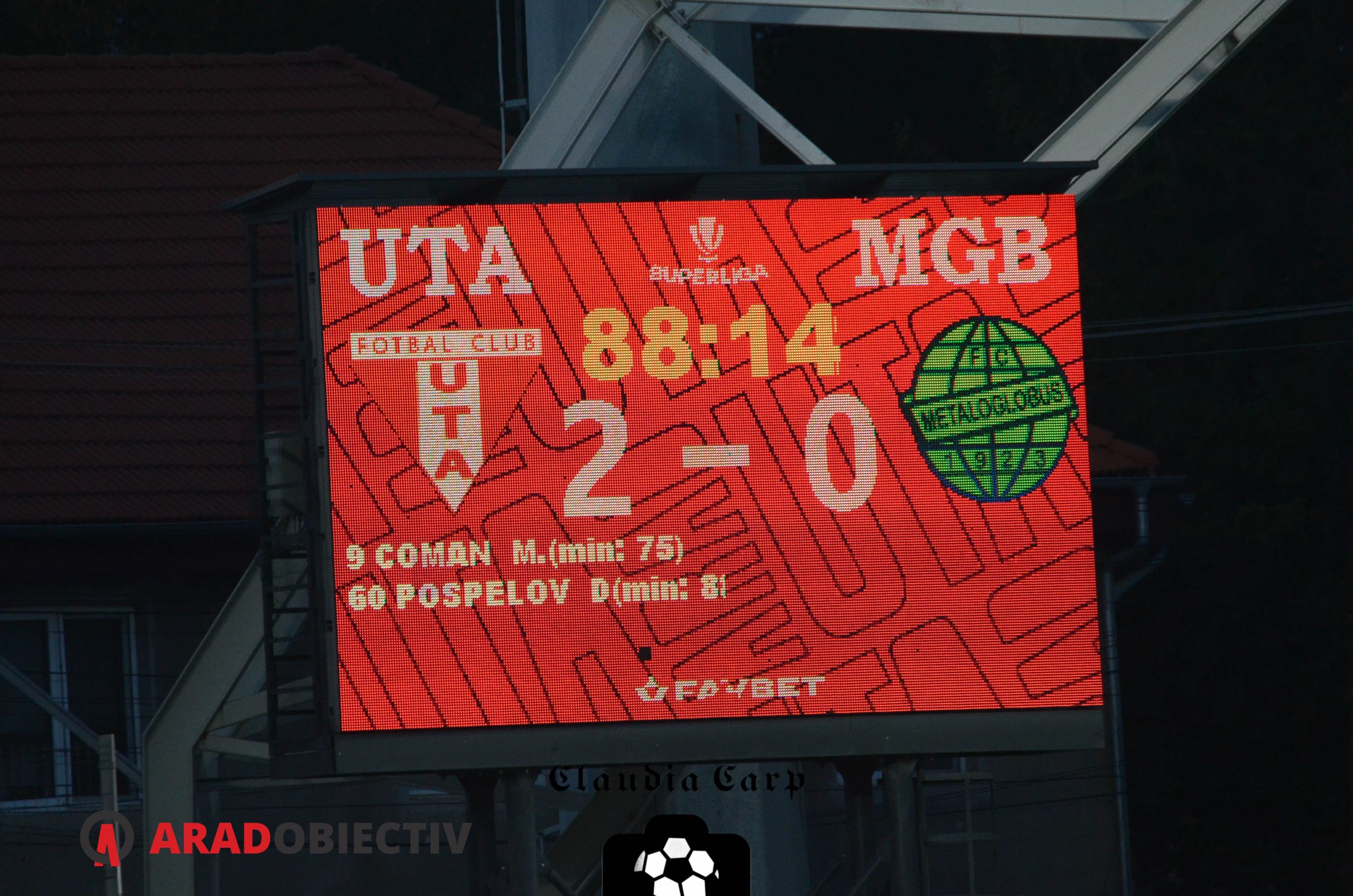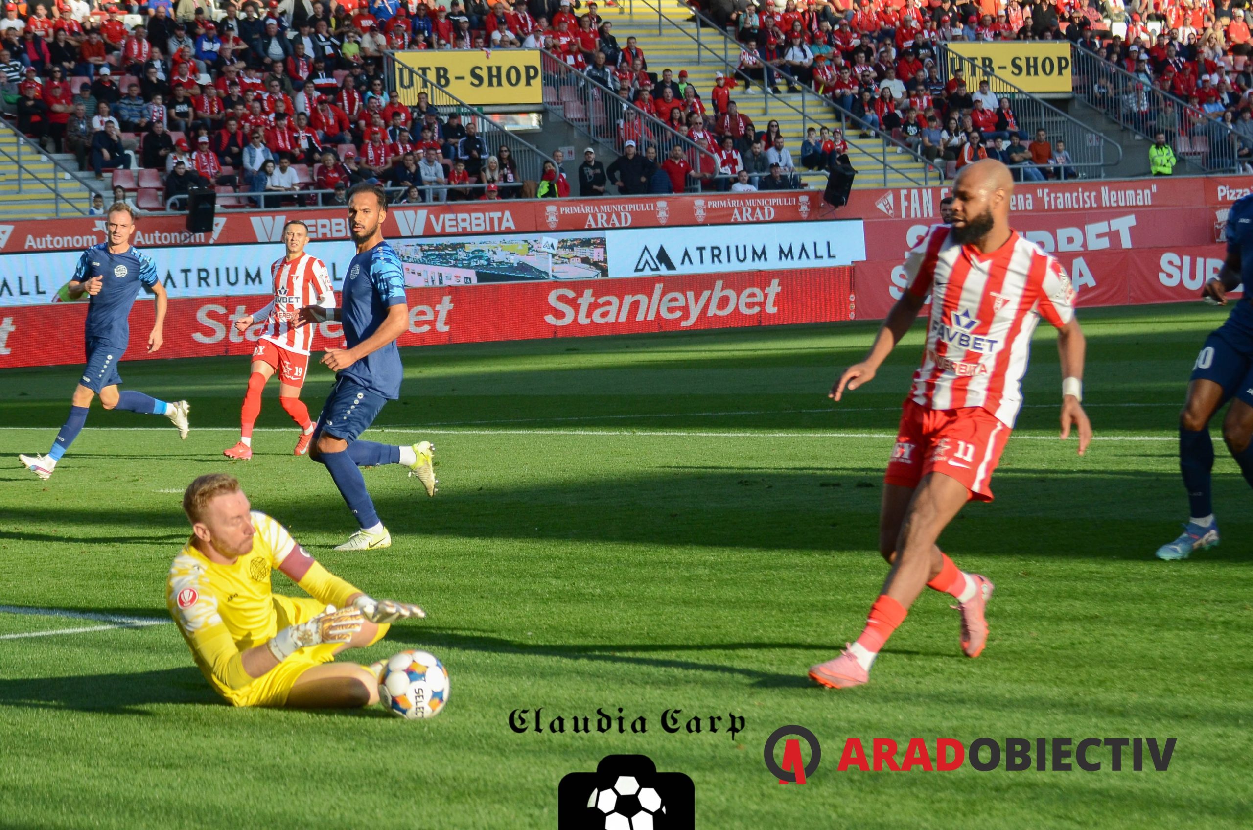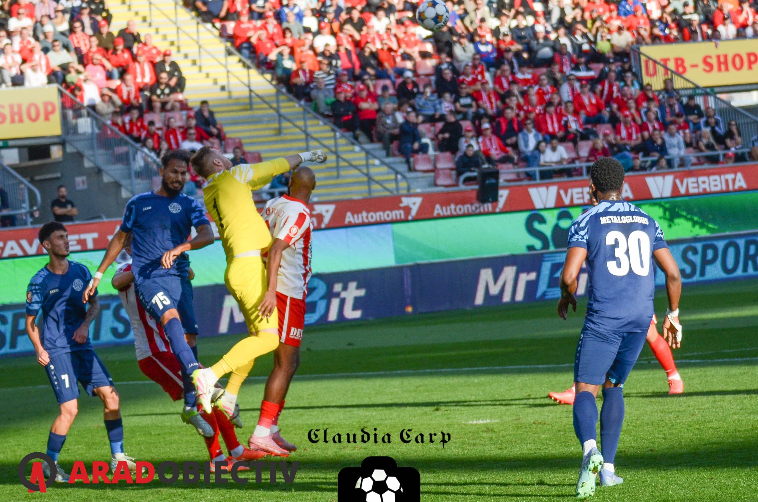 A fost multă tensiune ieri după-amiază pe Arena „Francisc Neuman“, în special în teren, acolo unde se întâlneau două echipe care se raportau la punctele puse în joc precum un rătăcit în deșert fără rezerve de apă la o oază îmbietoare. Privată de gustul victoriei de aproape 3 luni de zile, UTA a intrat pe teren decisă ca de data aceasta să nu mai rateze obiectivul pentru cele 90 de minute, însă între ea și acesta s-a așezat o echipă Metaloglobus care a jucat cu „setea“ unei echipe care acumulase doar 7 puncte în cele 14 etape precedente. A rezultat un meci foarte disputat, în special la nivelul duelurilor, lucru care poate fi ușor observat în elocventele instantanee surprinse de colega noastră Claudia Carp.