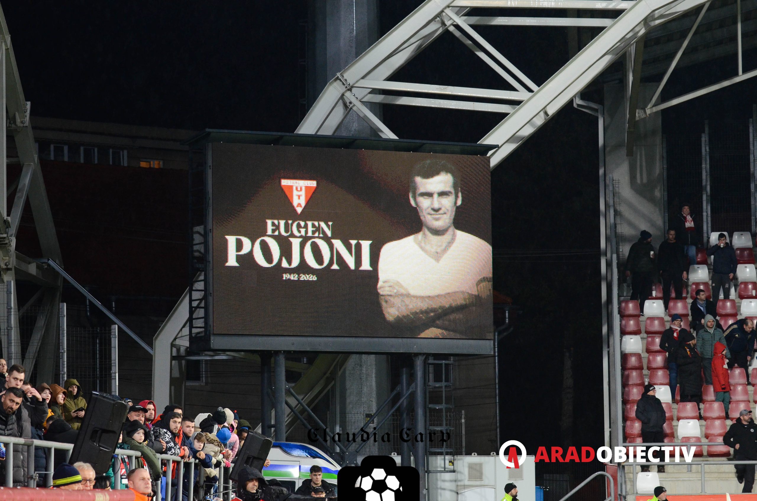 Trecând într-un registru total opus, să remarcăm fair-play-ul desăvârșit în care s-a ținut momentul de reculegere în memoria fostului fotbalist al Bătrânei Doamne, Eugen Pojoni, plecat dintre noi la începutul acestui an. Nu s-a auzit niciun sunet pe stadion în timpul acestui moment, lucru care ne-a dus cu gândul în mod natural la afinitățile britanice pe care UTA ca și club precum și suporterii ei le manifestă. De asemenea emoționant a fost și momentul loviturii de începere executate simbolic de către fostul jucător al ambelor echipe (dar mai cu seamă al Aradului), Ioan Țîrban. Acesta a fost aplaudat la scenă deschisă și a primit câte un tricou cadou din partea ambelor echipe.