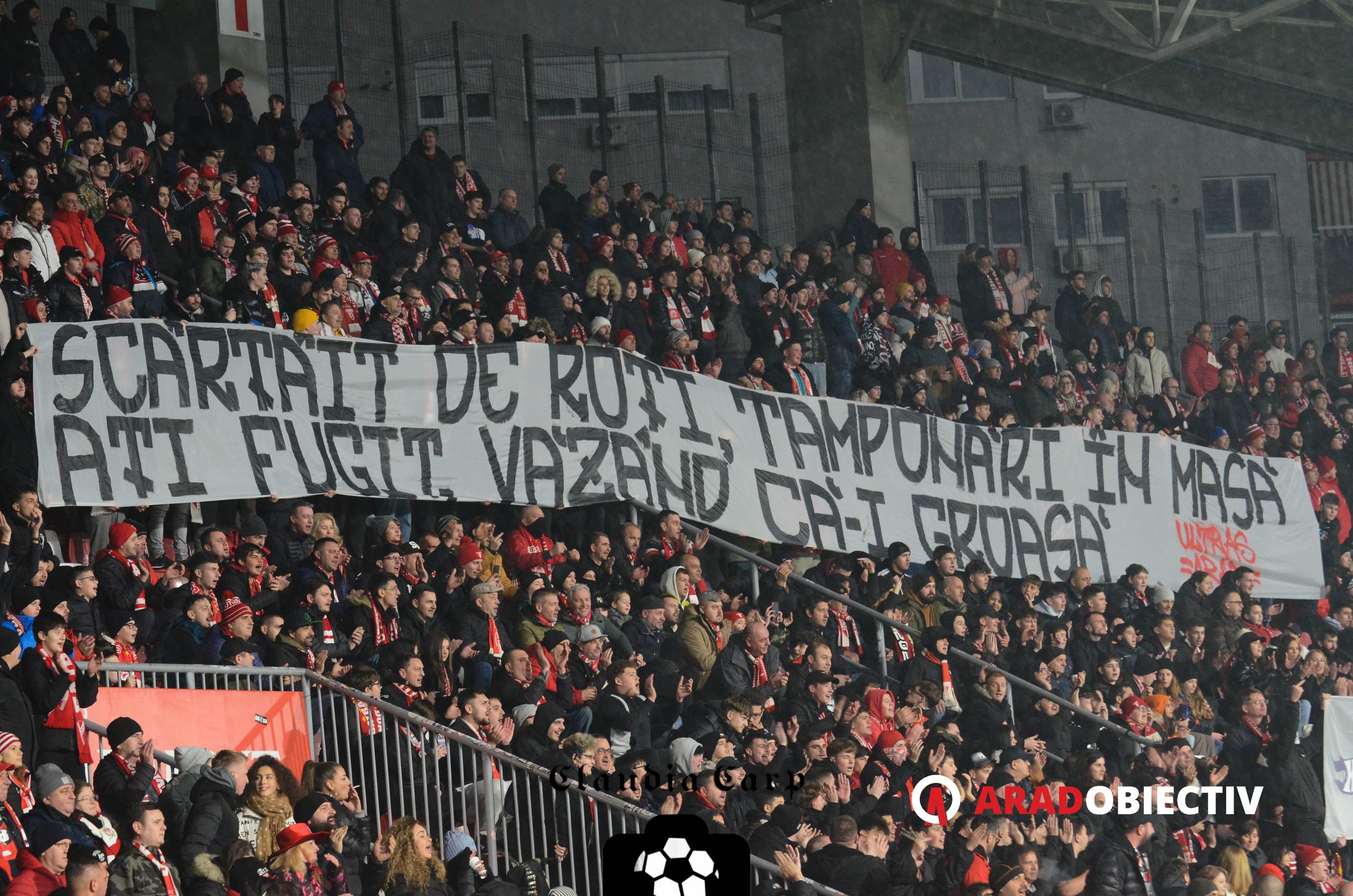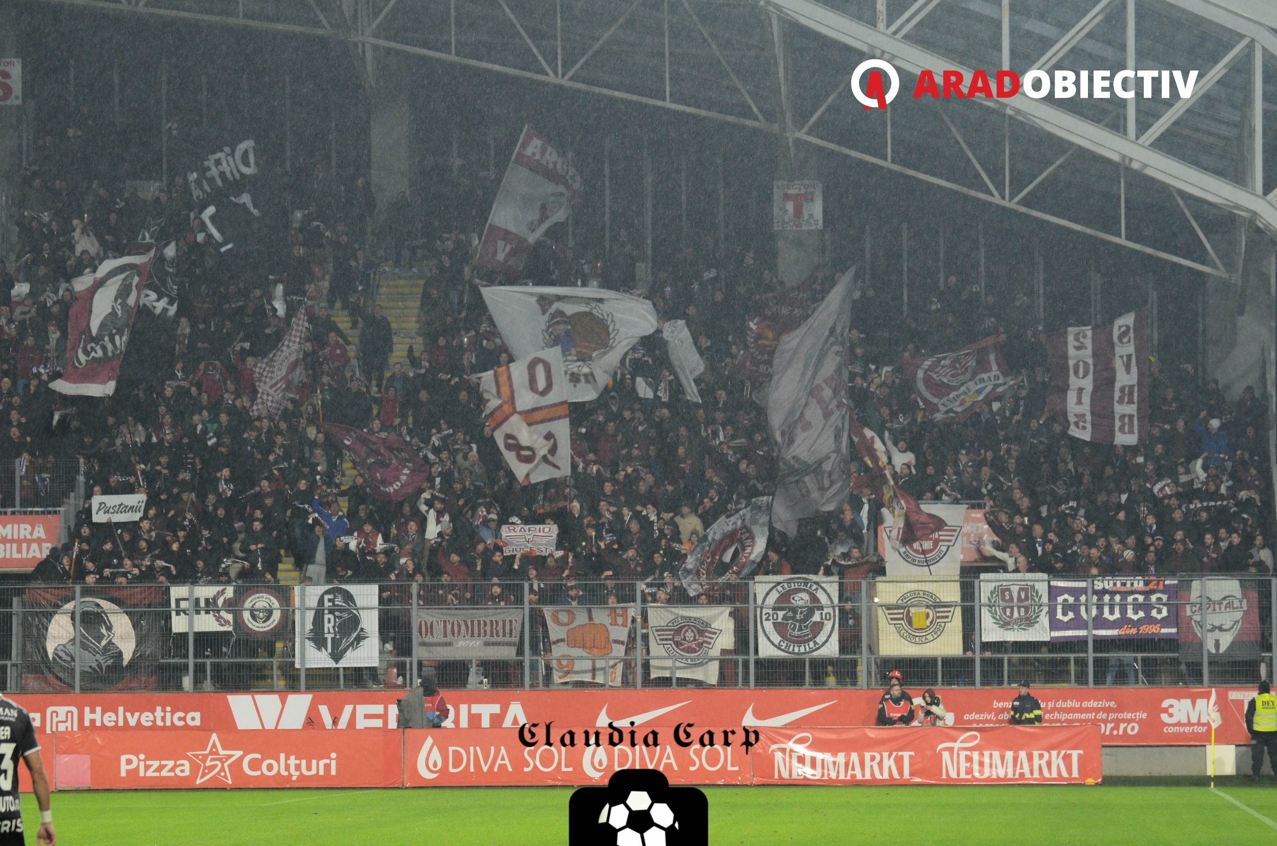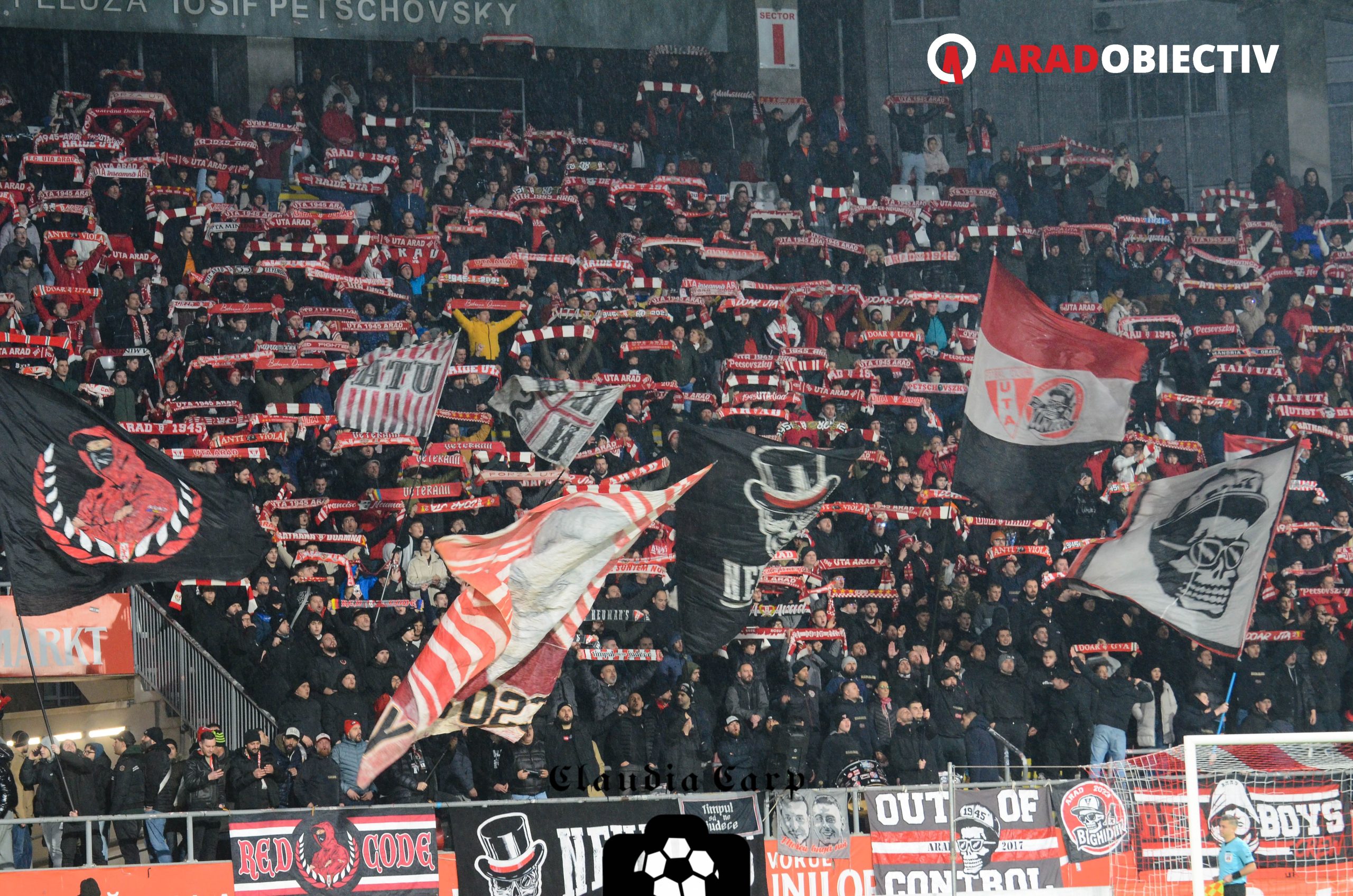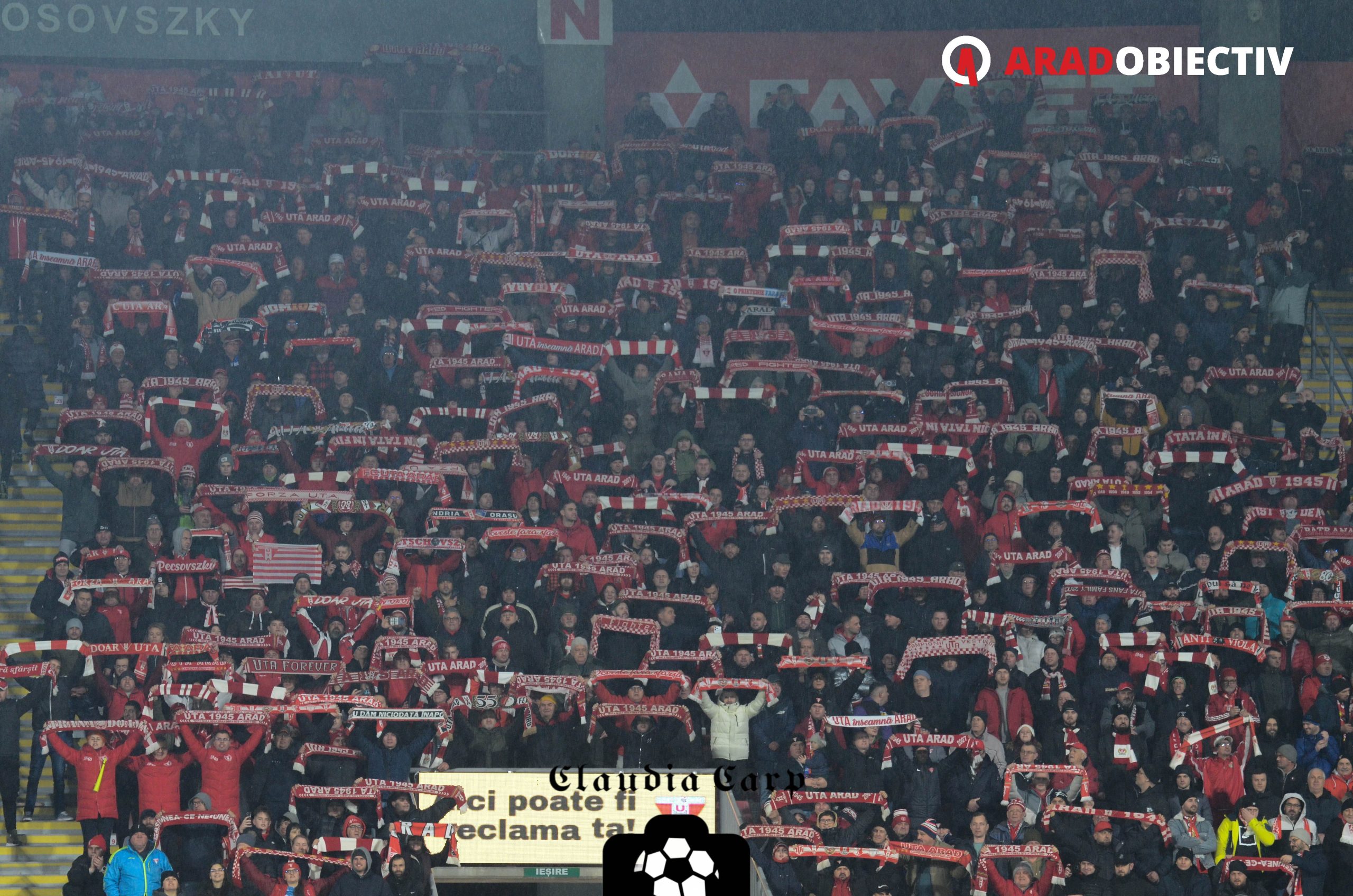 9319 spectatori au asistat aseară pe Arena „Francisc Neuman“ la partida dintre UTA și Rapid, aproximativ 700 dintre ei fiind suporteri ai echipei oaspete. Din păcate nici de data aceasta nu s-a jucat cu casa închisă (deocamdată în acest sezon UTA nu a avut niciun sold-out) dar stadionul a fost aproape plin iar atmosfera una de mare meci. Cele mai multe locuri goale au fost la peluză, dar nu la cea a galeriei arădene, așa cum au existat numeroase temeri, ci în Peluza Sud în sectorul rezervat copiilor de la cluburile din județ, probabil vremea rece și ploioasă plus ora târzie pentru un meci în timpul săptămânii afectând prezența acestora.