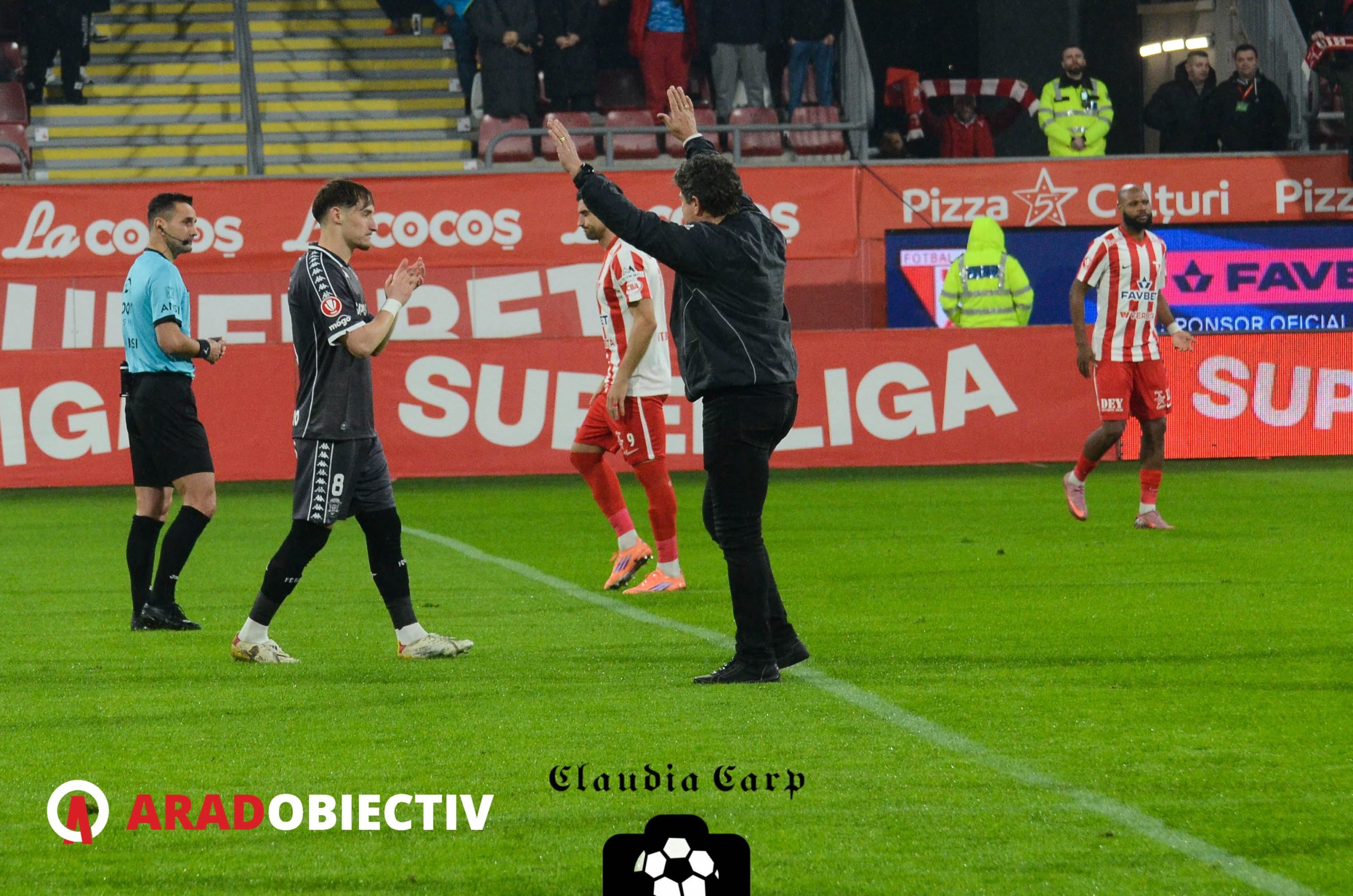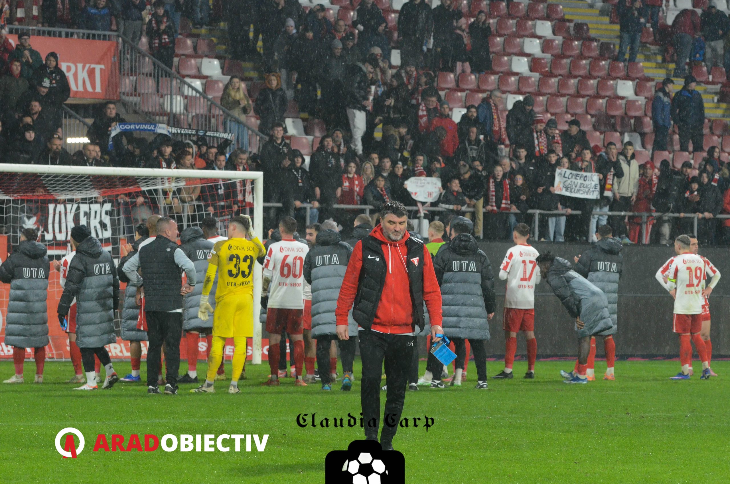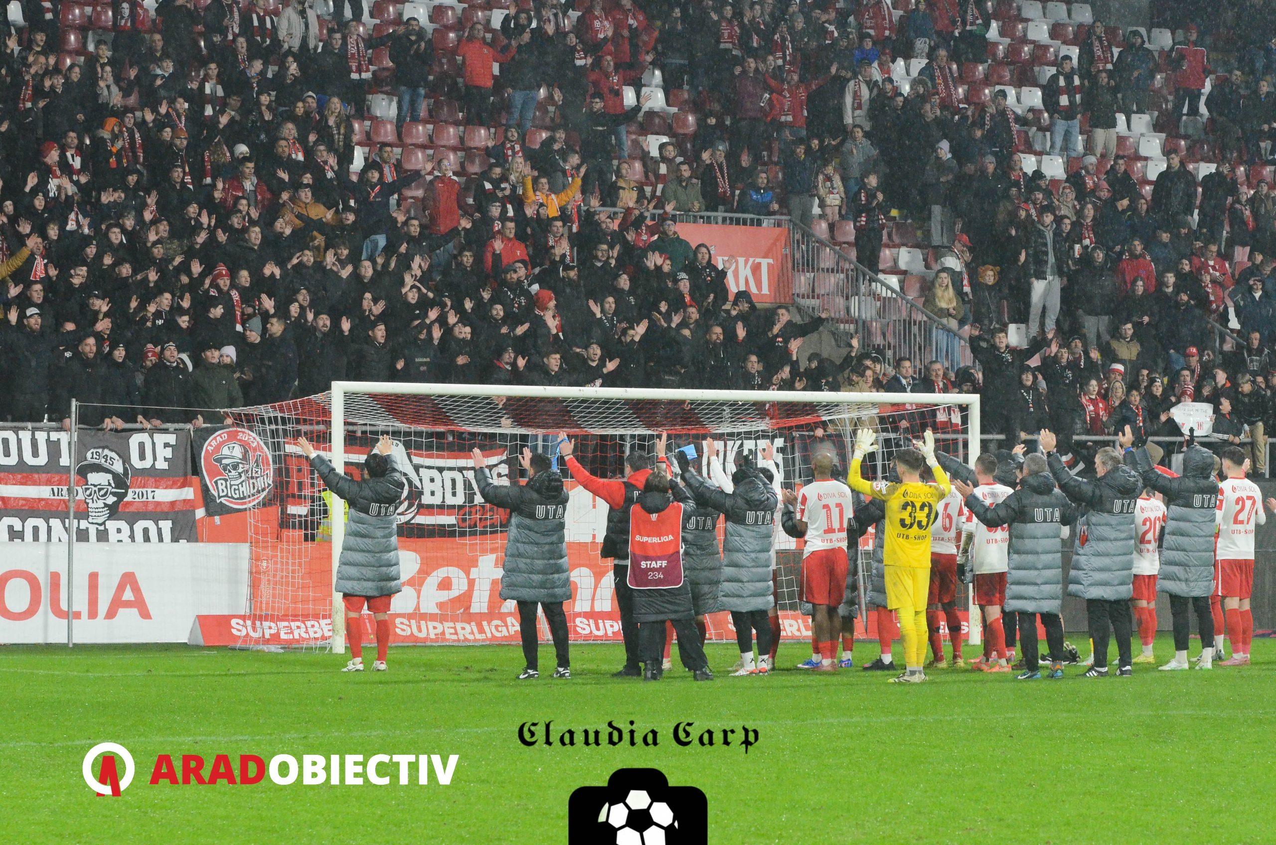 Tot la capitolul fair-play trebuie trecută și demnitatea cu care suporterii arădeni au primit înfrângerea. Utiștii au acceptat superioritatea adversarului și au apreciat spiritul de luptă al favoriților, motiv pentru care aceștia au fost aplaudați și încurajați atât de galerie cât și de restul stadionului în drumul lor spre vestiare. Sigur, nu același tratament l-a avut arbitrul Sebastian Colțescu, penalty-ul acordat de acesta oaspeților în minutul 40 transformându-l în inamicul public numărul 1, în special al suporterilor de la Tribuna 1, care i-au adresat diferite și felurite urări la intrarea pe tunel.