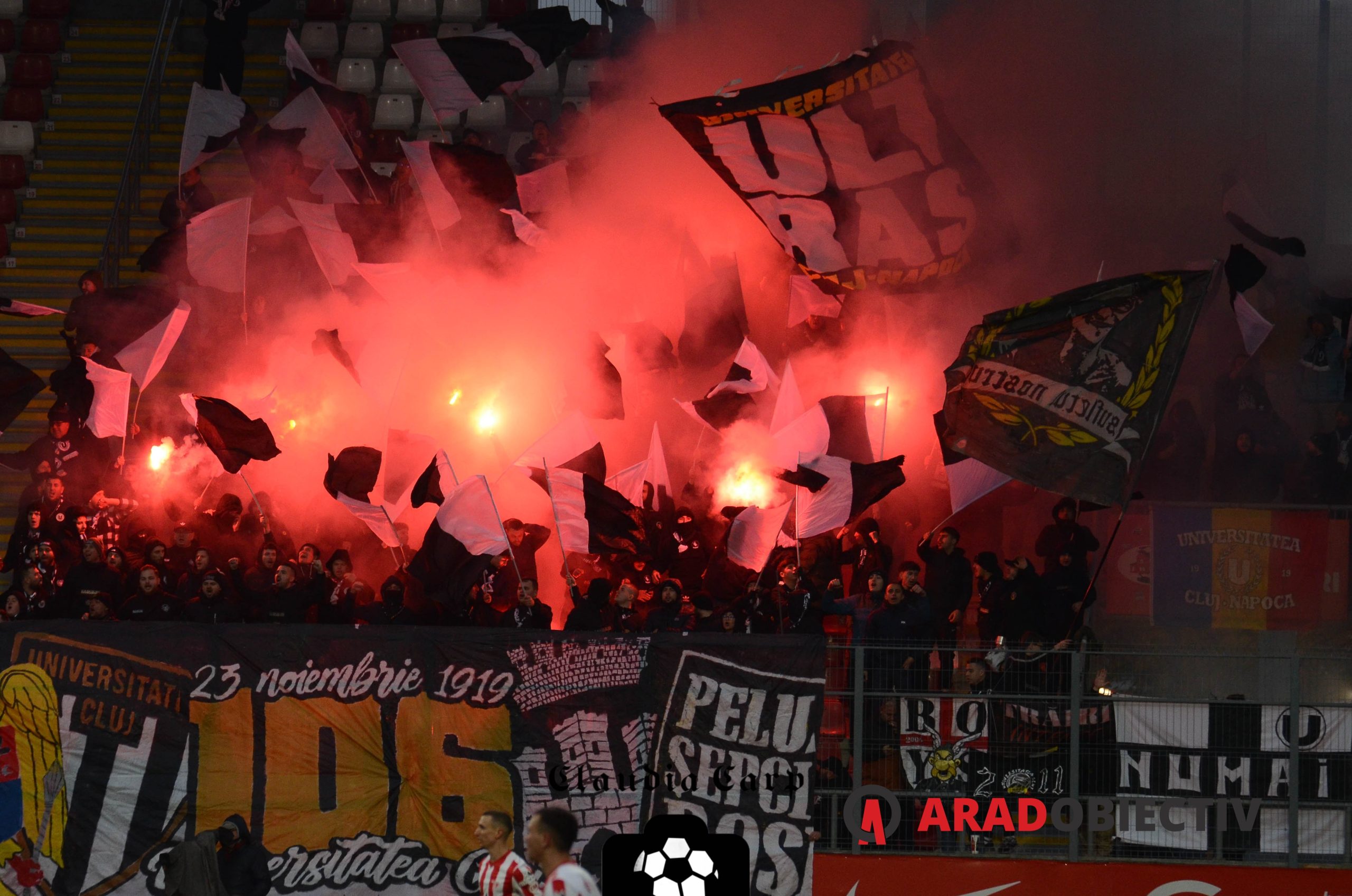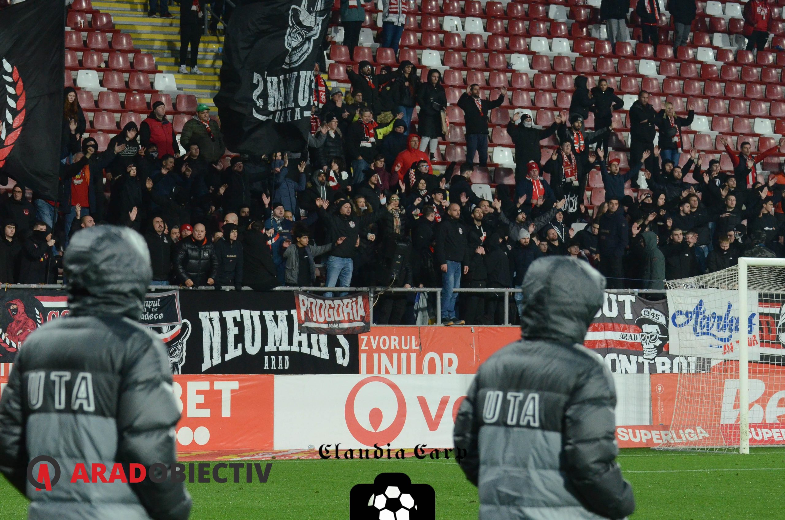 4200 de utiști și o mână de „U“iști au fost înfruntat ieri frigul pătrunzător de noiembrie pentru a asista la partida dintre UTA și Universitatea Cluj. Oaspeții, după ce s-au încălzit pe parcursul meciului de la torțele aprinse, s-au încins de-a binelea la final, cele trei puncte cucerite pe Mureș urmând să le țină de cald până etapa viitoare.